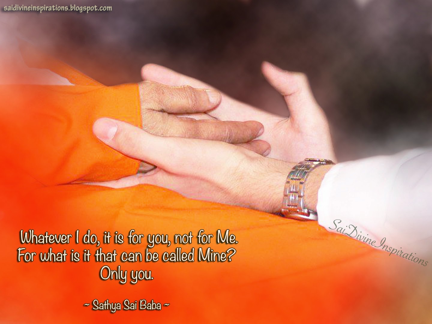 <http://3.bp.blogspot.com/-JS8eheWxNYQ/U0_EnUvpK-I/AAAAAAAAsQ4/IO00SCkc1xM/s1600/E-76(divine+love).jpg> Develop divine love towards the Lord, the supreme divine love of which He is the embodiment. Never give room for doubts and hesitations, for questions to test the Lord's love. "My troubles have not ended; why? Why is it that He did not speak to me? How is it I did not get a room for staying here? Why did he not call me?" you whine! Do not think that I do not care for you or that I do not know you. I may not talk to you, but do not be under the impression that I have no love. As a matter of fact, it is to give you the chance of darshan that I move along the veranda from this room to that. Whatever I do, it is for you, not for Me. For what is it that can be called Mine? Only you. (SSS Vol IV - Chap 31) Awaken the Divine within you... -- --- You received this message because you are subscribed to the Google Groups "saimsg" group. To unsubscribe from this group and stop receiving emails from it, send an email to [email protected]. For more options, visit https://groups.google.com/d/optout.