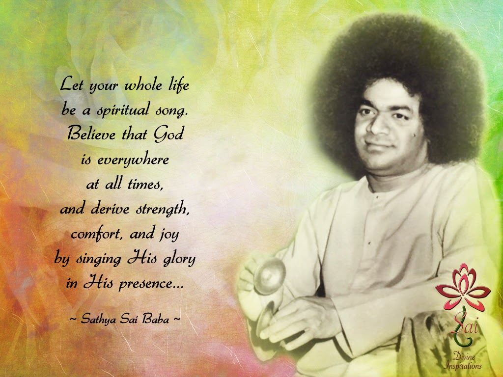 Let your whole life be a spiritual song. Believe that God is everywhere at all times, and derive strength, comfort and joy by singing His glory in His presence... ~ Sathya Sai Baba ~ Wishing you a blissful and joyous Sai Global Akhanda Bhajan weekend! Awaken the Divine within you... <http://mail.yimg.com/us.yimg.com/i/mesg/tsmileys2/40.gif> Love All, Serve All <http://mail.yimg.com/us.yimg.com/i/mesg/tsmileys2/40.gif> -- --- You received this message because you are subscribed to the Google Groups "saimsg" group. To unsubscribe from this group and stop receiving emails from it, send an email to [email protected]. For more options, visit https://groups.google.com/d/optout.