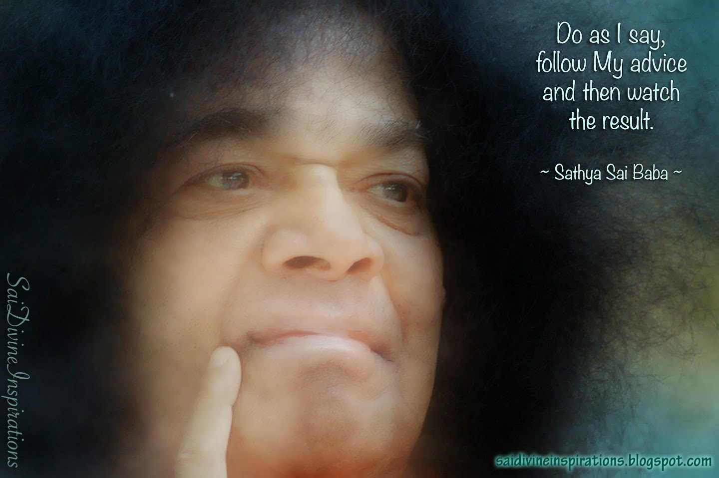 <http://4.bp.blogspot.com/-tPiqpRTXZ84/U3YXvreuPiI/AAAAAAAAtYw/SfPH5OVksQw/s1600/E-81(follow+my+advice).jpg> When you go to a doctor, you must take the medicine that he prescribes and follow his advice and instructions. There is no use blaming him if you default. How can he cure you if you do not drink the mixture or stick to the restrictions he has imposed or regulate your diet according to his advice? Do as I say, follow My advice and then watch the result. (SSS. Vol I - Chap 12) Awaken the Divine within you... <http://mail.yimg.com/us.yimg.com/i/mesg/tsmileys2/40.gif> Love All, Serve All <http://mail.yimg.com/us.yimg.com/i/mesg/tsmileys2/40.gif> -- --- You received this message because you are subscribed to the Google Groups "saimsg" group. To unsubscribe from this group and stop receiving emails from it, send an email to [email protected]. For more options, visit https://groups.google.com/d/optout.