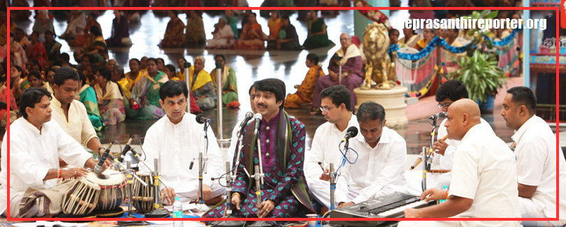 Friday, September 4th, 2015 The AP-TS Parthi Yatra culminated this evening with a pleasant ‘magical’ surprise. Singer Sai Ram Iyer from Mumbai, an artist with an unusual blessing, who possesses an incredibly matching dual tone, made it to the artist’s dais this evening fulfilling his long-cherished dream of singing for Bhagawan in His ‘immediate’ Divine Presence. Shri Sai Ram Iyer has been in the Sai fold right from his childhood, a Balvikas student first then an active Sai Youth from Mumbai. Sai Ram Iyer’s scintillating musical offering… <http://www.sssbpt.org/images/2015/SaiRamIyer2015_1.jpg> God Is All…the bestower of talent and talent itself. When one relies on Him, surrendering, leaving no trace of doer-ship, He does it with His touch, in His style. This evening when singer Sai Ram took the mike, he literally left the Prasanthi audience spellbound, singing with his ‘extra-rich’ dual tones. Rightly, Sai Ram Iyer dedicates this extraordinary flair to Bhagawan’s pure grace. Sai Ram Iyer’s scintillating musical offering… <http://www.sssbpt.org/images/2015/SaiRamIyer2015_2.jpg> This evening Sai Ram began with “Janaki Jane…”, a Rama devotional with a Carnatic touch. He then continued with a duet, a Mira Bhajan, “Ram Ka Gun Gaan Kariye…” with his much appreciated tonal variations, followed by his next selection, a scintillating “Sathyam Sivam Sundaram…”. The spellbound audience with raised brows sat in disbelief, breaking into raptures. Sai Ram Iyer’s scintillating musical offering… <http://www.sssbpt.org/images/2015/SaiRamIyer2015_3.jpg> Subsequently, this gifted artist included “Shyam Tere Bansi…”, a Mira Bhajan, “Iss Dharthi Pe…”, “Sai Nath Terey Hazaron Haath…”, “Saavariya…”, “Adhivo Alladhivo Prasanthi Nilayamu…” in his tuneful repertoire, thereon to end with a stimulating “Narayan Narayan…” bhajan of Lord Viththala. Sai Ram Iyer’s scintillating musical offering… <http://www.sssbpt.org/images/2015/SaiRamIyer2015_4.jpg> Earlier, the session had commenced with a speech by the State President of SSSSO – AP-TS, Sri S.G. Chellam, wherein, after offering gratitude at Bhagawan’s Lotus Feet for His perennial blessings, the State President lucidly explained the various ongoing service activities in the twin States. Sai Ram Iyer’s scintillating musical offering… <http://www.sssbpt.org/images/2015/SaiRamIyer2015_5.jpg> Sri Gopikrishna Pidathala then introduced the guest artist for the evening. This evening Sri Sai Ram was accompanied by Sarvasree Sathya Sai Bhakaskar on Guitar, Vijay Srinivas on Tabla, Guru Prasad on Keyboard, Pramod on Flute and Vijay on Rhythm Pads. Five diploma holders of the Rural Vocational Training Centre (RVTC) at CH – Pothepalli, West Godavari district were presented Electrical Kits this evening under the welfare scheme of the Organisation. Sai Ram Iyer’s scintillating musical offering… <http://www.sssbpt.org/images/2015/SaiRamIyer2015_6.jpg> Bhajans next ended with Mangala Arathi at 1830 hrs. II Samastha Lokah Sukhino Bhavantu II sourced: <http://www.theprasanthireporter.org/2015/09/sai-ram-iyers-scintillating-musical-offering/> http://www.theprasanthireporter.org/2015/09/sai-ram-iyers-scintillating-musical-offering/ _____ Happy Janmashtami <http://www.ssso.net/pnews-2015/Happy-Janmashtami01-2015.gif> SAI KRISHNA JANMASHTAMI 2015 <http://www.ssso.net/pnews-2015/Janmashtami2015.jpg> An exclusive Radiosai facebook timeline cover to celebrate the Joyful occasion of Sri Krishnashtami! Sri Krishna Janmashtami is the birthday of Lord Sri Krishna, the Avatar of the Dwapara Yuga, usually falls in late August in the Indian lunar month of Shravana. Bhagawan has declared that Lord Krishna’s advent took place at 3 a.m. on 20th July, 3228 B.C, the Ashtami Day (eighth day after full moon) under the star ‘Rohini’ in the dark fortnight (Kri...shna Paksha) of Shravana Masa in the year named ‘Srimukha’. Janmashtami (also called Gokulashtami or Krishnashtami) is a very colourful and joyous celebration in Prasanthi Nilayam. The Mandir transforms itself into another ‘Brindavan’ of the times of Lord Sri Krishna when as a child He frolicked in the company of His cowherd friends. Feel free to make it your facebook timeline cover photo and dive deep into the divine essence of Sai Krishna Consciousness. Spread the blissful vibration of Sai Kanha around you and merge yourself with Thy Divinity! Radio Sai Krishnashtami Special Bhajan Medley <http://www.ssso.net/pnews-2015/krsna-1.jpg> <https://soundcloud.com/radiosai/krishnashtami-special-bhajan-medley> https://soundcloud.com/radiosai/krishnashtami-special-bhajan-medley <http://media.radiosai.org/www/mp3download/Krishnashtami-bhajan-medley.mp3> Download full http://media.radiosai.org/www/mp3download/Krishnashtami-bhajan-medley.mp3 <http://media.radiosai.org/www/mp3download/Krishnashtami-bhajan-medley.mp3> <http://media.radiosai.org/journals/vol_10/01DEC12/ringtones.htm> Krishna Janmashtami Special Wallpapers Radio Sai added 4 new photos to the album: <https://www.facebook.com/media/set/?set=a.928610403894765.1073742370.181243118631501&type=3> Radio Sai Krishnashtami 2015 Special Wallpapers. The incarnation of Krishna proclaimed the doctrine of divine love, as manifested by the cowherd maids (gopikas). Man is like an earthen pot filled with nectar. His body may be made of clay, but his spirit is eternal. The Divine has to be experienced through the body. Hence, human birth should not be treated as something trivial. Human life is worth living; it should be cherished as something precious. Radio Sai team pleased to present some Special Special wallpapers to celebrate this auspicious occasion of Krishna Janmashtami with the essence of Sai Krishna Consciousness and Thy uniqueness. <http://www.ssso.net/pnews-2015/krsna-5.jpg> <http://www.ssso.net/pnews-2015/krsna-6.jpg> <http://www.ssso.net/pnews-2015/krsna-7.jpg> <http://www.ssso.net/pne
