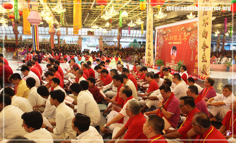 Chinese New Year in Bhagawan’s ‘Immediate’ Presence… Celebrating the Lunar ‘Chinese’ New Year – 2016, devotees from the Chinese speaking nations presented a glittering cultural evening here, in Prasanthi Nilayam today. The session, attended by over 300 Chinese speaking devotees from Indonesia, Malaysia, Thailand, Singapore, Hong Kong and Australia, turned out to be an exuberant one, marked with piety and gaiety and varied hues of devotional fervour. Chinese New Year in Bhagawan’s ‘Immediate’ Presence… <http://www.sssbpt.org/images/2015/CNY2016_1.jpg> Coinciding with the Chinese New Year back in the South Eastern nations, this year Prasanthi Nilayam is engaged in two-day celebrations comprising varieties of spiritual-cultural offerings. Based on Chinese astrology, each New Year is associated with an animal sign, occurring in a 12-year cycle, this New Year being that of Monkey. Chinese New Year in Bhagawan’s ‘Immediate’ Presence… <http://www.sssbpt.org/images/2015/CNY2016_2.jpg> This evening’s session commenced at 1700 hrs with lighting of the lamp by the organisers. ‘Thanks Giving’, an essential traditional feature of the Chinese New Year followed next, offered by a group of selected children from the participating countries, who offered traditional Chinese delicacies at the Sanctum Sanctorum. Chinese New Year in Bhagawan’s ‘Immediate’ Presence… <http://www.sssbpt.org/images/2015/CNY2016_3.jpg> Devotees from Medan, Indonesia took over for a brief session next, airing sacred Chinese Buddist Mantras. Delivering his welcome address, Bro Billy Fong, Chinese New Year Coordinator from Malaysia, spoke of the essential message of the New Year, from Chinese parlance, that being man’s Ultimate Goal, Realisation. Bro Billy Fong also enlightened the audience of the Sadhana regulations and procedures, prescribed by Bhagawan HimSelf. About the unparalleled preciousness of human life, that is meant to achieve liberation, the speaker connected it with the famous Chinese story of the blind turtle that comes up from the deep sea once in a hundred years, to meet up with the ‘priceless coincidence’ – the wandering wooden ring. Bro Billy Fong is currently the Regional Coordinator for Zone 41 of SSIO. The theme for this year’s celebrations is “Integrity – Foundation For Life”. Chinese New Year in Bhagawan’s ‘Immediate’ Presence… <http://www.sssbpt.org/images/2015/CNY2016_4.jpg> Following next, a special group of devotees from Malaysia played a few Instrumental Bhajans, played on Mouth Organs. Echoing the inspired voice of an International Sai Youth, delivering the voice of confidence, integrity and devotion, Bro Alvin Leo, a second generation Chinese-Australian and an active youth member of Sathya Sai International Organisation, addressed the assembly next. Deliberating on the Chinese spiritual legacy that points to the the treasure within, the Inner Spiritual Kingdom, the speaker focused on the Sadhana to be followed as prescribed by Bhagawan. Sadhana is a must for mind control and to amplify the will of inner voice, said Alvin. Narrating a personal experience involving Bhagawan aftermath the typhoon Haiyan in the Philippines, the speaker reiterated in a voice of greater confidence and enthusiasm that, “In the name of good God Is there.” Chinese New Year in Bhagawan’s ‘Immediate’ Presence… <http://www.sssbpt.org/images/2015/CNY2016_5.jpg> The speaker also related the beautiful story of the greeting ‘Hai’ connoting the same with “Soham” (I Am That…), as proclaimed by Bhagawan HimSelf, explaining ‘H’ and ‘I’ - that being ‘He and I” Are One. Talking about Bhagawan’s Mission ahead, Alvin sounded extremely confident and convinced, who proclaimed, “…now it is up to us to continue this great Miracle of Love that He has set in motion”, calling out everyone to write the special chapter in the history of humanity. “Each and everyone of you are His legacy and it is through you His Love will manifest ever and ever”, concluded Alvin Leo. Bro Alvin is currently Media Coordinator for Zone 3 and a committee member of the International Youth Programme, of the SSIO. Chinese New Year in Bhagawan’s ‘Immediate’ Presence… <http://www.sssbpt.org/images/2015/CNY2016_6.jpg> Medley of Chinese New Year songs, in Chinese Mandarin next was followed by live session of International Sai Bhajans, in a mix of Chinese Mandarin – Prasanthi. Bhajans by the students continued and the session ended with Mangala Arathi at 1850 hrs. Chinese New Year in Bhagawan’s ‘Immediate’ Presence… <http://www.sssbpt.org/images/2015/CNY2016_7.jpg> The session showcased in ample measure the traditional glitter and spiritual glory of the rich Chinese-Buddhistic culture. II Samastha Lokah Sukhino Bhavantu II __._,_.___ -- --- You received this message because you are subscribed to the Google Groups "saimsg" group. To unsubscribe from this group and stop receiving emails from it, send an email to [email protected]. For more options, visit https://groups.google.com/d/optout.