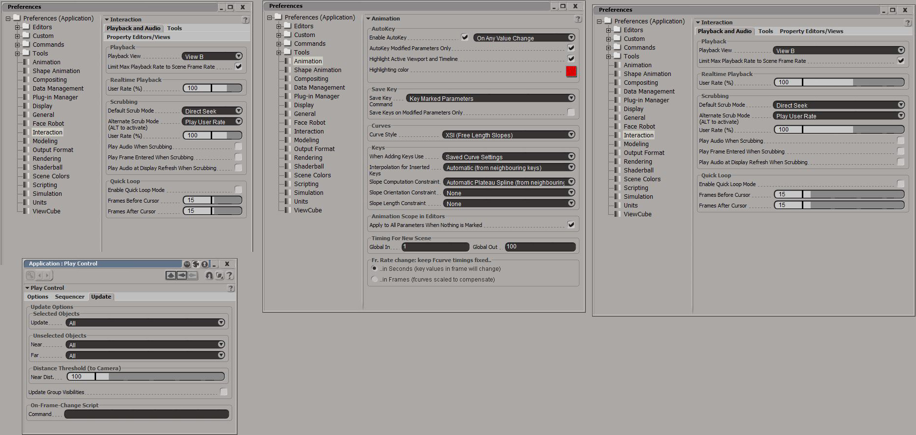 Remembering channels from SI|3D, I managed to get it to work (sort of) in XSI, Under the animation panel, Devices>Manage device drivers – then click add choose the mouse (or what ever) Now you can start capture , and it will capture your movements.. From: [email protected] [mailto:[email protected]] On Behalf Of Sven Constable Sent: יום ג 17 מאי 2016 08:58 To: [email protected] Subject: RE: Autokey while playback No, it creates keyframes on release. Consecutive keyframes *could* be possible when using channels, like back in the days with Soft|3D. I never used that feature in XSI but it's implemented somewhere. I was thinking of a possible GPU or maybe OS issue too. I can't verify it, because I'm entirely on Win7 on all machines (tested Win10 an dropped it). I'm using a Nvidia GTX980ti. Are you able to change parameters and drag stuff around during playback at all? Would be interesting if others could check the autokey on playback behavior on their machines. sven From: [email protected]<mailto:[email protected]> [mailto:[email protected]] On Behalf Of Jason S Sent: Tuesday, May 17, 2016 1:25 AM To: [email protected]<mailto:[email protected]> Subject: Re: Autokey while playback Hum, Perhaps it's also a GPU thing. Or perhaps it works, but when the mouse is released that a keyframe is created during playback? Or does it create consecutive keyframes -while- a slider is being dragged (without ever releasing mouse) ? (would be awesome if so :-] ) On 05/16/16 18:59, Sven Constable wrote: Here are screenshots of the prefs I'm using: www.imagefront.de/tmp/playback_prefs.jpg<http://www.imagefront.de/tmp/playback_prefs.jpg> From: [email protected]<mailto:[email protected]> [mailto:[email protected]] On Behalf Of Sven Constable Sent: Tuesday, May 17, 2016 12:41 AM To: [email protected]<mailto:[email protected]> Subject: RE: Autokey while playback I did a few tests and changed most of the prefs in the playback option, playback preferences and global preferences back and forth but it remains working. So, yes, autokey during playback works here (it creates keyframes for every parameter changed, no matter if its sliders or interactive transforms . I'm on SI2015 SP2. I have no idea why it should not work. Afaik it was always like that. From: [email protected]<mailto:[email protected]> [mailto:[email protected]] On Behalf Of Jason S Sent: Tuesday, May 17, 2016 12:12 AM To: [email protected]<mailto:[email protected]> Subject: Re: Autokey while playback Hum! perhaps there is another pref that may affect it? So it creates a key every frame while playback as you do transforms (or slider changes) ? On 05/16/16 17:43, Sven Constable wrote: Yes, autokey while playing works here. With transformations as well as other keyable parameters. sven From: [email protected]<mailto:[email protected]> [mailto:[email protected]] On Behalf Of Jason S Sent: Monday, May 16, 2016 10:52 PM To: [email protected]<mailto:[email protected]> Subject: Re: Autokey while playback Hi, @Sven are you sure you got it working? I may be wronng, but I don't think playback with transforms + autokey ever worked (or was meant to work) to capture transform actions. @toonafish Sorry for not posting sooner, but this also should work for recording viewport actions; http://www.si-community.com/community/viewtopic.php?p=53922#p53922 Cheers, -J On 05/16/16 13:25, toonafish wrote: Strange, can’t get it to work. But I used the Device Input thingy instead, it needs a little more work to setup, but gets the job done. Thanks, Sven On 16 May 2016, at 15:36, Sven Constable <[email protected]<mailto:[email protected]>> wrote: Works here in 2015. Make sure, the Autokey function is using 'on any value change' (Preferences/Animation) sven From: [email protected]<mailto:[email protected]> [mailto:[email protected]] On Behalf Of toonafish Sent: Monday, May 16, 2016 1:51 PM To: [email protected]<mailto:[email protected]> Subject: Autokey while playback I remember it being possible to automatically set keyframes while playing the animation by simply enabling autokey and translating or rotating an object in the viewport. But no matter what I try, it no longer seems to work. I only get a keyframe at the beginning and end of playback. Is it me, or is this feature broken in SI 2015 ? Thanks, Ronald ------ Softimage Mailing List. To unsubscribe, send a mail to [email protected]<mailto:[email protected]> with "unsubscribe" in the subject, and reply to confirm. ------ Softimage Mailing List. To unsubscribe, send a mail to [email protected]<mailto:[email protected]> with "unsubscribe" in the subject, and reply to confirm. ------ Softimage Mailing List. To unsubscribe, send a mail to [email protected]<mailto:[email protected]> with "unsubscribe" in the subject, and reply to confirm. ------ Softimage Mailing List. To unsubscribe, send a mail to [email protected]<mailto:[email protected]> with "unsubscribe" in the subject, and reply to confirm.