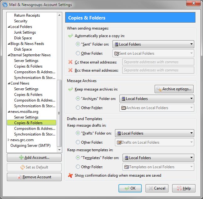 [X] "Sent" Folder on: [Local Folders]
