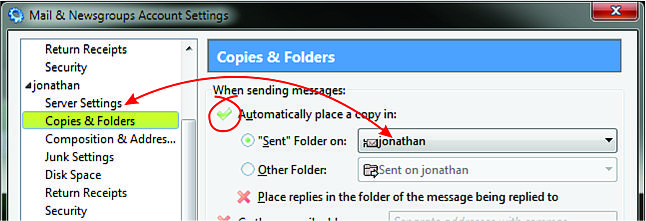 checked the option : "Automatically place a copy in "Sent" folder".........
