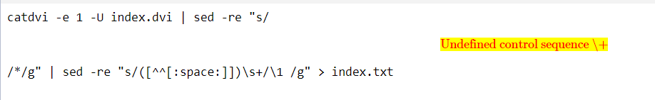 catdvi -e 1 -U index.dvi | sed -re "s/\[U\+2022\]/*/g" | sed -re