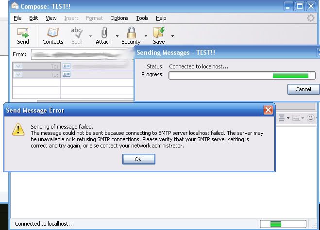 Set up AOL for Thunderbird and when I get an email I can read/Download it fine, but when I go to send a message from it I get it asking for my "Local host" password, where do I set/change that? If I click cancel to that I get this error: