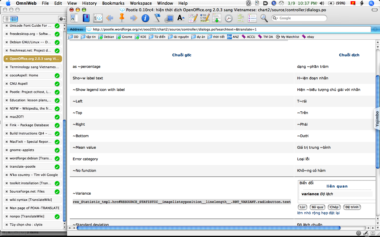http://www.riverland.net.au/~clytie/images/deformed_page.png Sometimes, even if I keep trying to view the same string, I can't. Other times, I can get to it by coming back, or by proceeding one string at a time. I don't know what is causing this inability to display a particular string for editing. 2. As I mentioned in a previous mail, there is an issue with extremely wide original strings, not caused by the strings themselves, but by the very long string-IDs in OOo. This screenshot: http://www.riverland.net.au/~clytie/images/pushed_to_right.png shows the input field completely covered by the Related pane, so I can't click in it at all. I have to Tab until the field is selected, then use the arrow-keys to move around in it. This screenshot: http://www.riverland.net.au/~clytie/images/ptr_obscures_buttons.png shows both the input field and the action buttons obscured. I have a wider screen than I used to have, and I reduced the width of my tab drawer, but those OOo string IDs are just too long. We need to restrict their display width in some way. I hope this info.is useful. :) from Clytie (vi-VN, Vietnamese free-software translation team / nhóm Việt hóa phần mềm tự do) http://groups-beta.google.com/group/vi-VN ------------------------------------------------------------------------- Using Tomcat but need to do more? Need to support web services, security? Get stuff done quickly with pre-integrated technology to make your job easier Download IBM WebSphere Application Server v.1.0.1 based on Apache Geronimo http://sel.as-us.falkag.net/sel?cmd=lnk&kid=120709&bid=263057&dat=121642 _______________________________________________ Translate-pootle mailing list [email protected] https://lists.sourceforge.net/lists/listinfo/translate-pootle