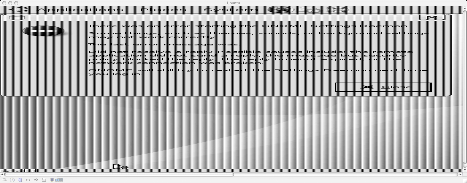 then it becomes broken like that http://www.setupmac.com/ubuntu/ubuntu-610-boot2.png then it comes with GNOME error http://www.setupmac.com/ubuntu/ubuntu-610-gnome-error.png if I try to click ok there it comes to the broken desktop http://www.setupmac.com/ubuntu/ubuntu-610-brokendesktop.png if I try to switch to a console screen it look like one of the folloowing http://www.setupmac.com/ubuntu/ubuntu-610-ctrlaltf1.png http://www.setupmac.com/ubuntu/ubuntu-610-ctrlaltf2.png I am downloading xbuntu, and I will post a new comment here if I have any luck -- 6.06 on Virtual PC (on G5 PowerMac) corrupted graphics https://bugs.launchpad.net/bugs/50178 You received this bug notification because you are a member of Ubuntu Bugs, which is the bug contact for Ubuntu. -- ubuntu-bugs mailing list [email protected] https://lists.ubuntu.com/mailman/listinfo/ubuntu-bugs