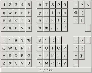 + 次に各キーを打ったときに入力される文字を表形式で表示(仮想鍵盤表示)