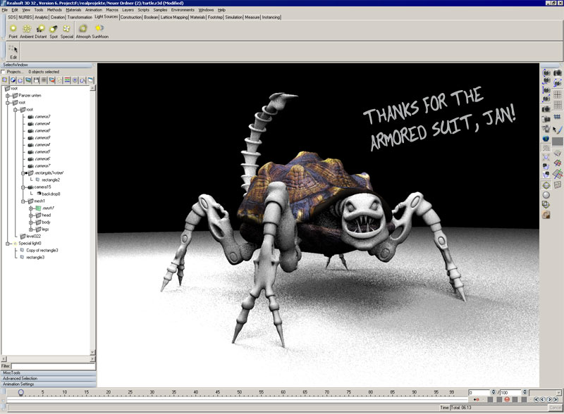 Hey Jan, thanks for the turtle...:-) my old friend, the scorpio-like-beast, loves it:-) have a look: (just quick and dirty-render)