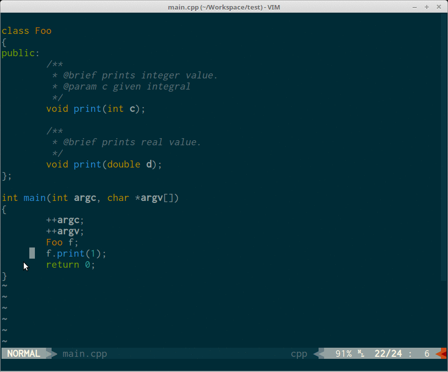https://files.gitter.im/Valloric/ycmd/2ari/vim-overlay.gif Here is an another demo from earlier implementation. You can note that I'm passing argument to the overlayclose(2) at the end. At that time I was considering having multiple popups at the same time and giving them id-s. But I postponed that idea till the single overlay is polished enough and there is actually need for multiple popups. A little bit on docs: Well row/col are self explanatory. [ list_of_items ] strings to be shown in popup. If only one element is specified then vim's existing balloon like popup will show up. If more then one strings are specified popup will show one element at a time, but will have backward/forward buttons allowing to switch between them. And the last argument will indicate whether strings in list should be treated like pango markup (default value 0). When using markup <, > and & characters should be escaped wherever necessary as < > & Examples: call overlayshow(10, 10, ['Some doc information']) call overlayshow(10, 10, ['void foo(int&)', 'void foo(<b>double</b>)'], 1) -- -- You received this message from the "vim_dev" maillist. Do not top-post! Type your reply below the text you are replying to. For more information, visit http://www.vim.org/maillist.php --- You received this message because you are subscribed to the Google Groups "vim_dev" group. To unsubscribe from this group and stop receiving emails from it, send an email to [email protected]. For more options, visit https://groups.google.com/d/optout.