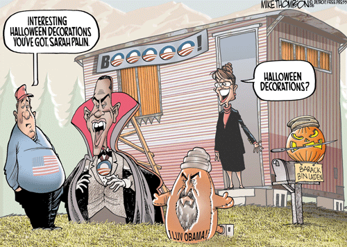 sea of "Palin Power" and "Sarahcuda" T-shirts, tried to link Obama to the