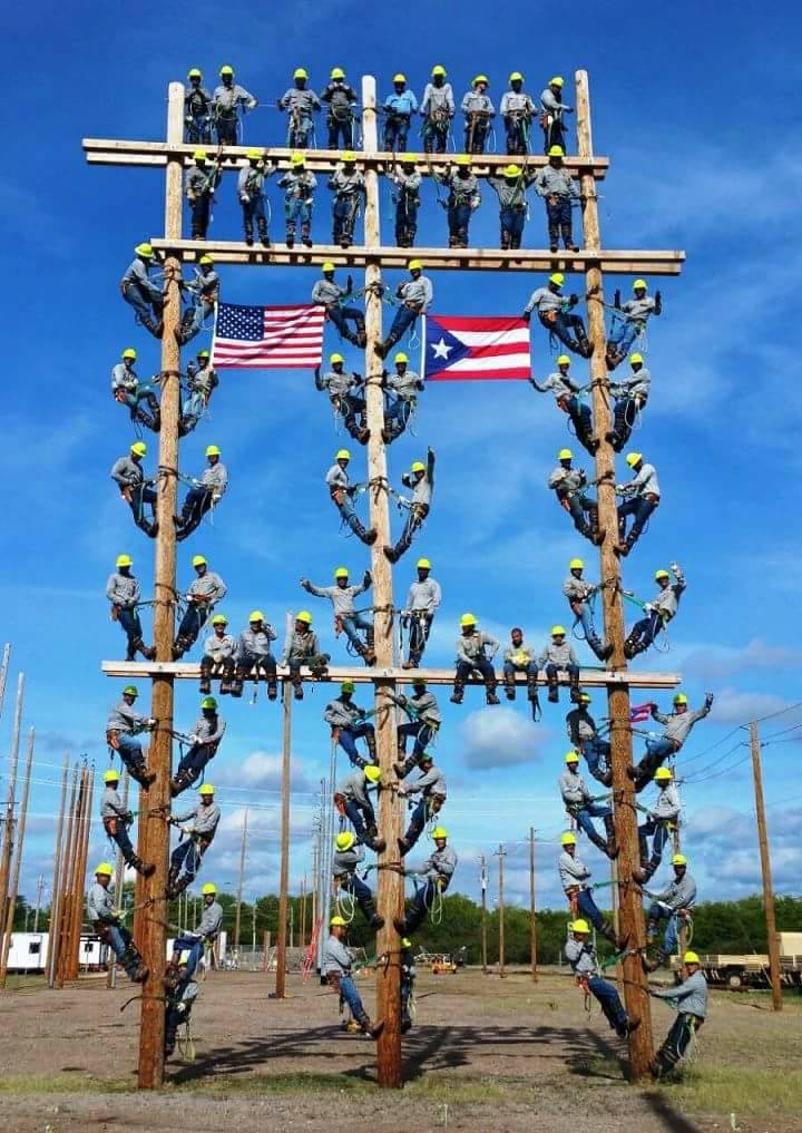 Shows about 3 dozen electrical workers