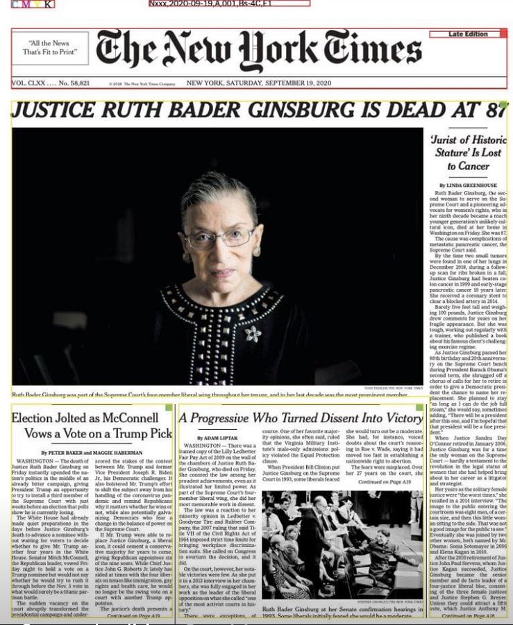 The earlier edition was only 5 out of 6 columns. http://www.dburstein.com/images/nyt-rbg-obit-102.jpg